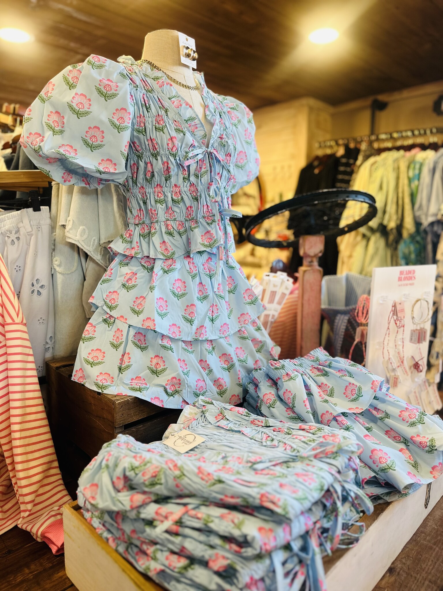 The Uptown Peach Hibiscus Skies Tiered Mini Skirt