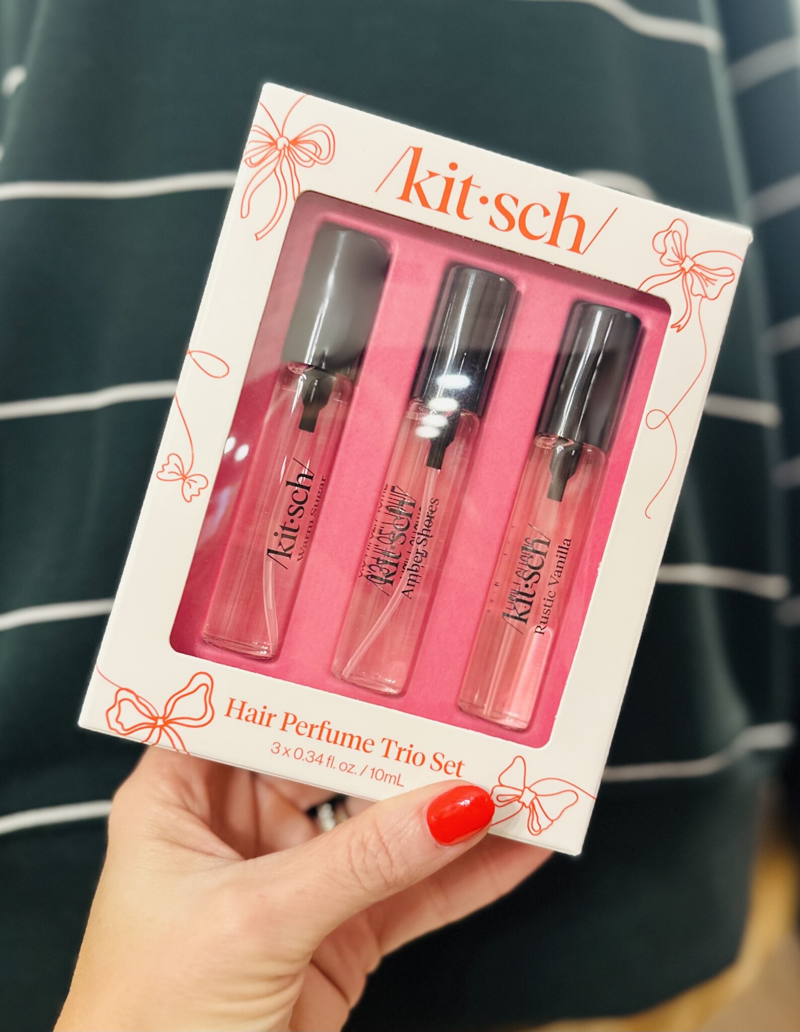 - Includes three 10ml versions of Warm Sugar, Rustic Vanilla and Amber Shores Hair Perfume