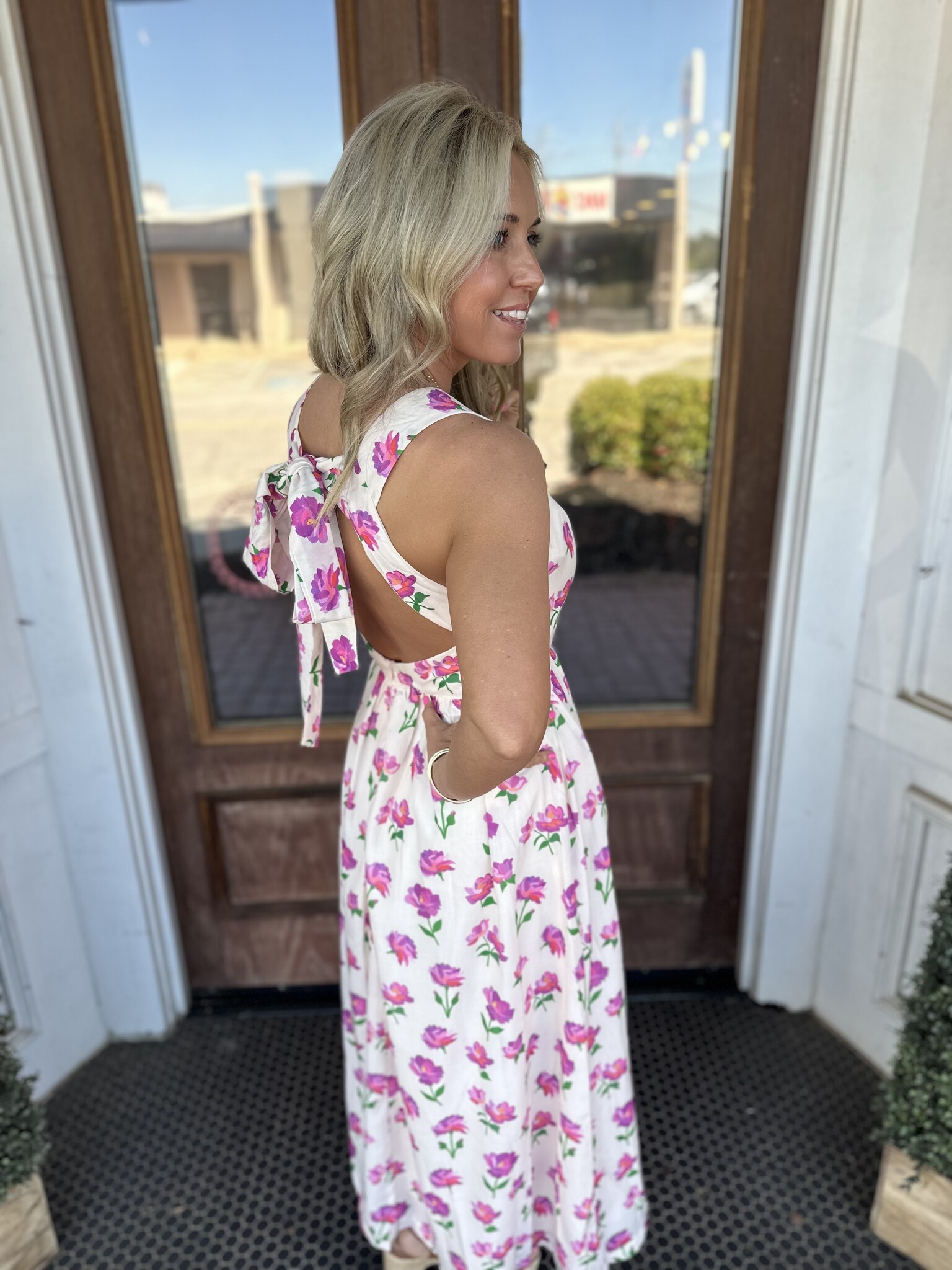Petal Whispers Bow Back Midi Dress