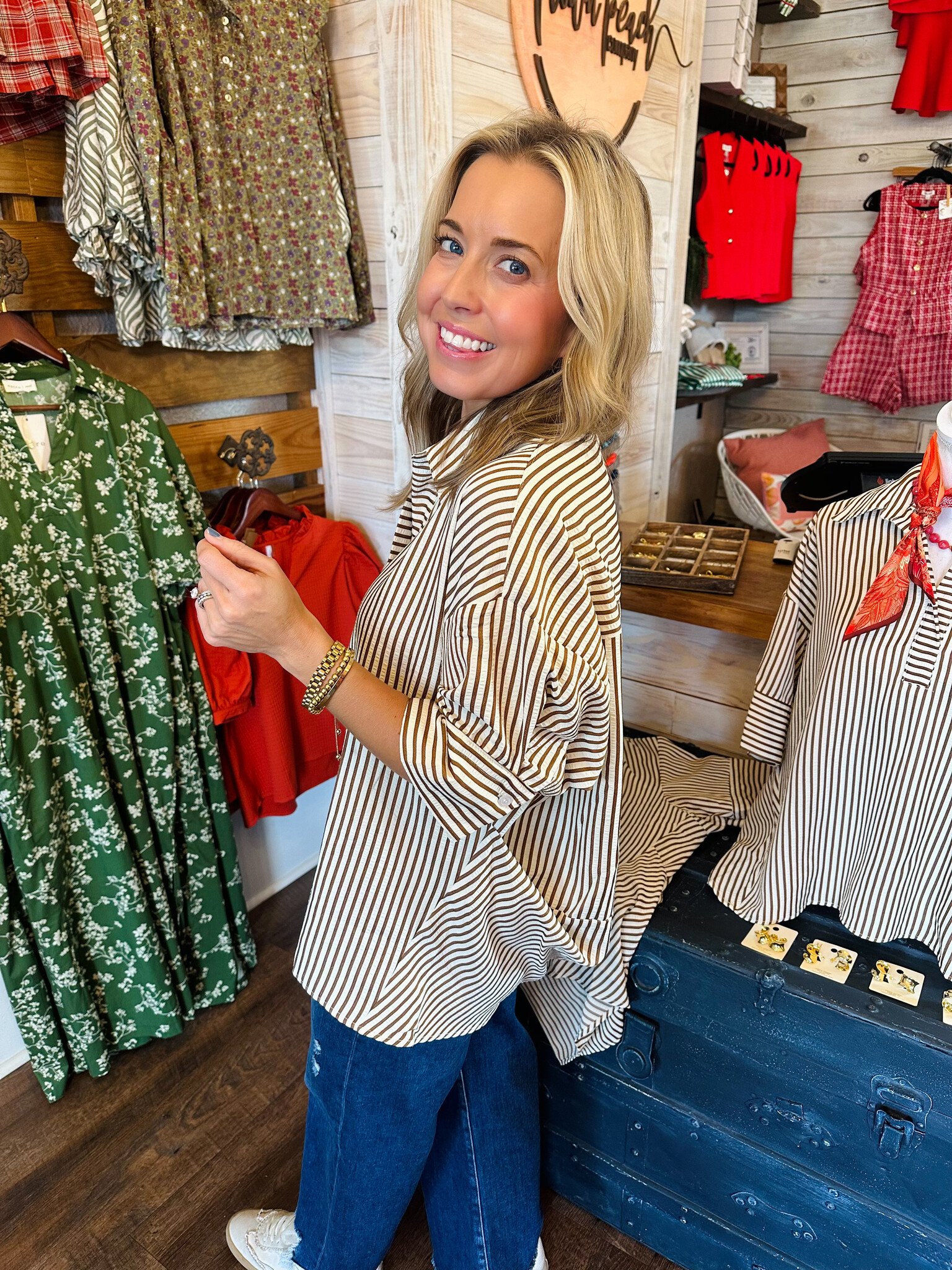 Review The Uptown Peach Stella Stripe Oversized Top