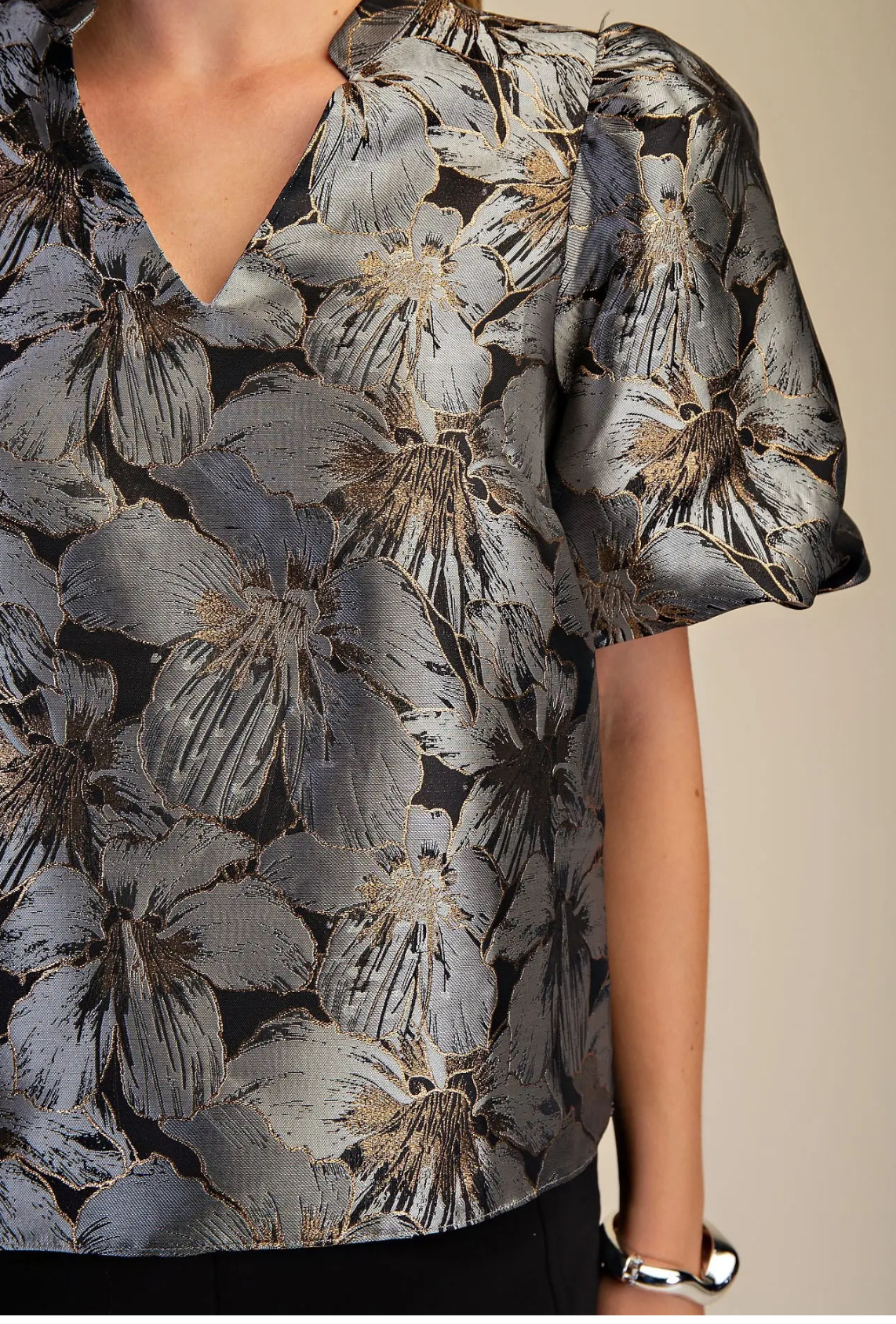 Review The Uptown Peach Valerie V-Neck Puff Sleeve Top