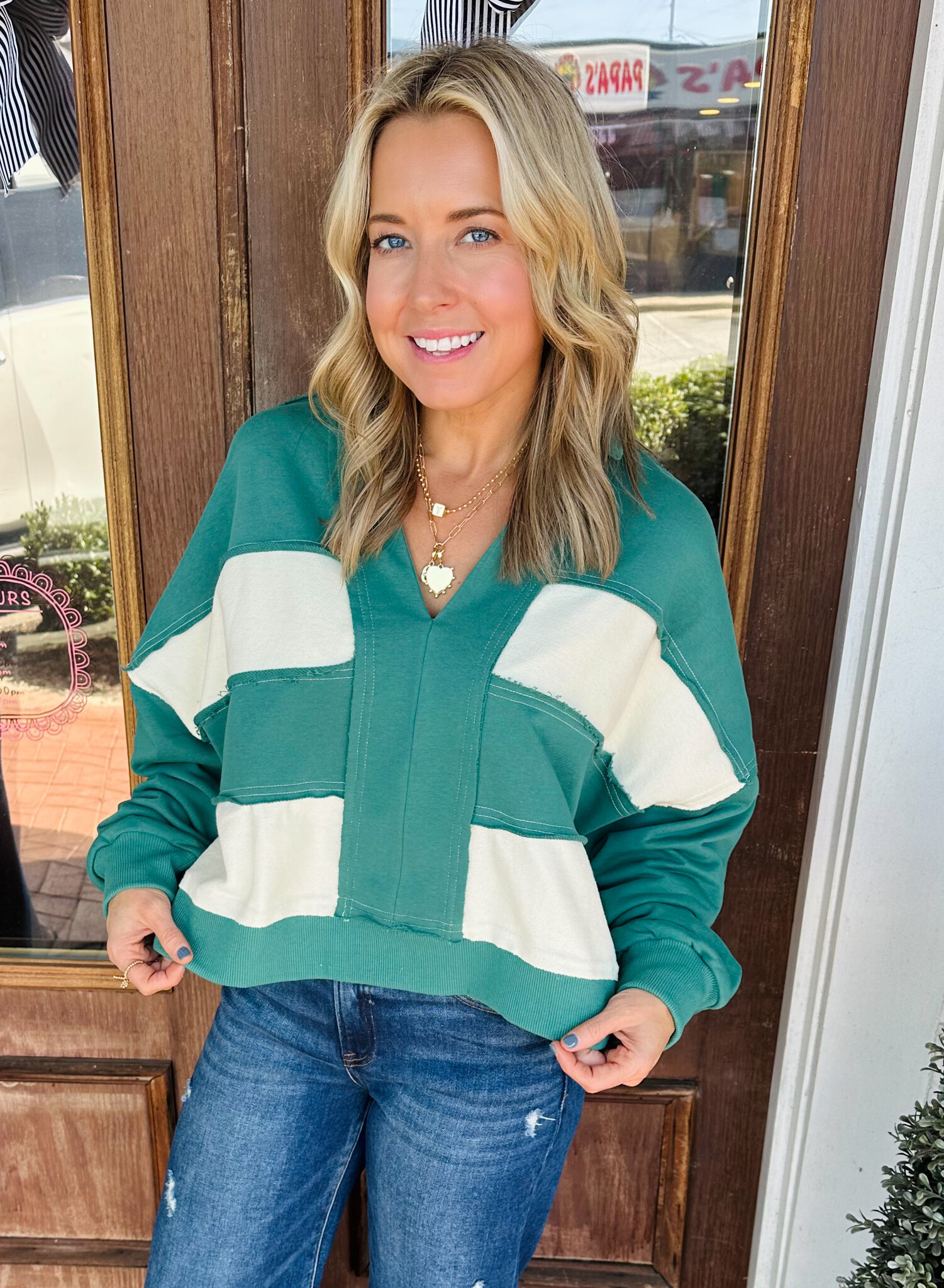 The Uptown Peach Vintage Varsity Crop Green/Ivory